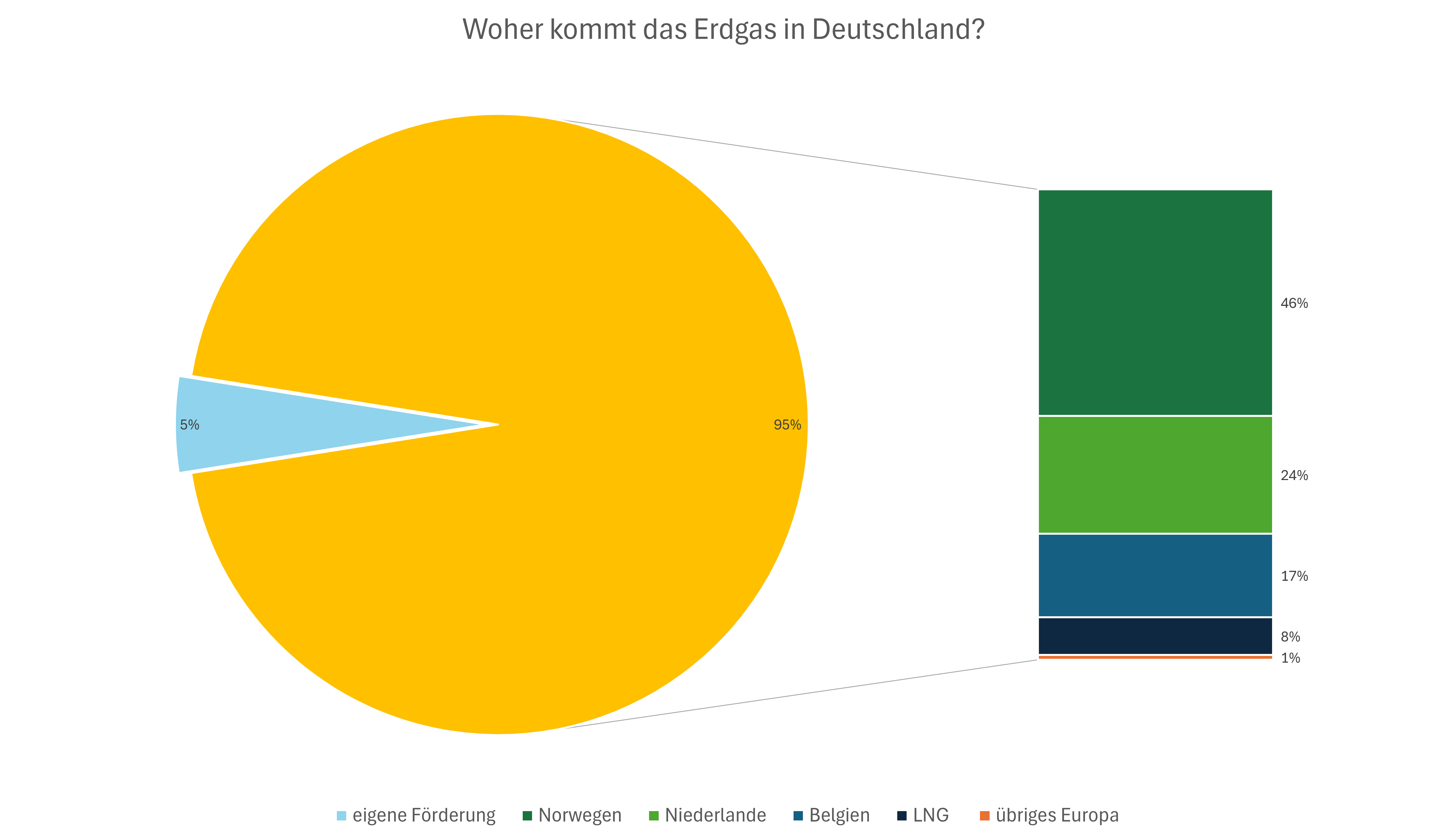 Kreisdiagramm, das zeigt, woher unser Erdgas kommt